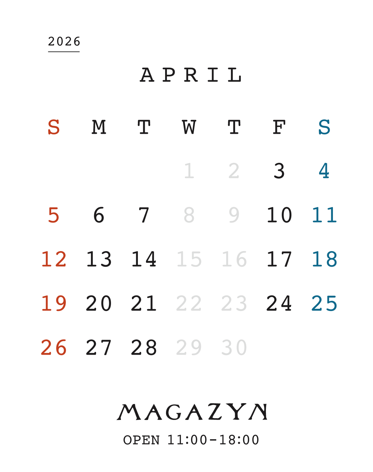 4月の営業日